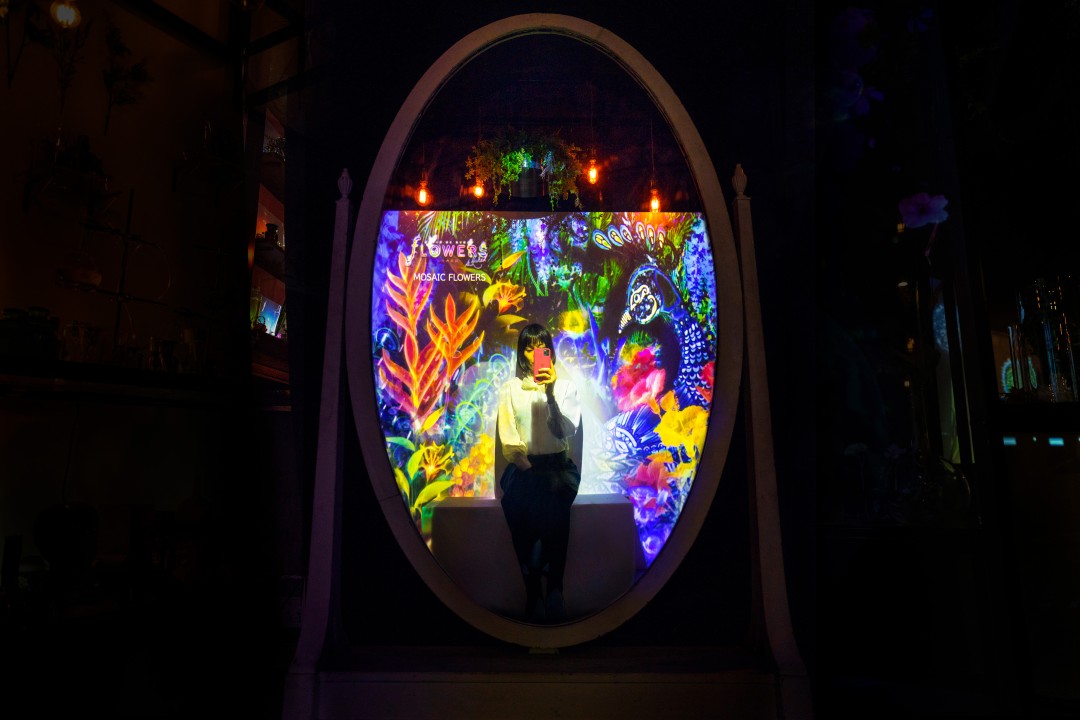 环视馆内的任何一处都可以欣赏到盛开的光之花,影像和声音,还有香气的梦幻治愈空间。制作光之花的秘密研究所和每前进一步都会在脚下开花的小路、不断变化的光之花田等,有很多值得一看的地方。这是一个充满“只有自己”和“只有那个时候”的数字艺术空间。
