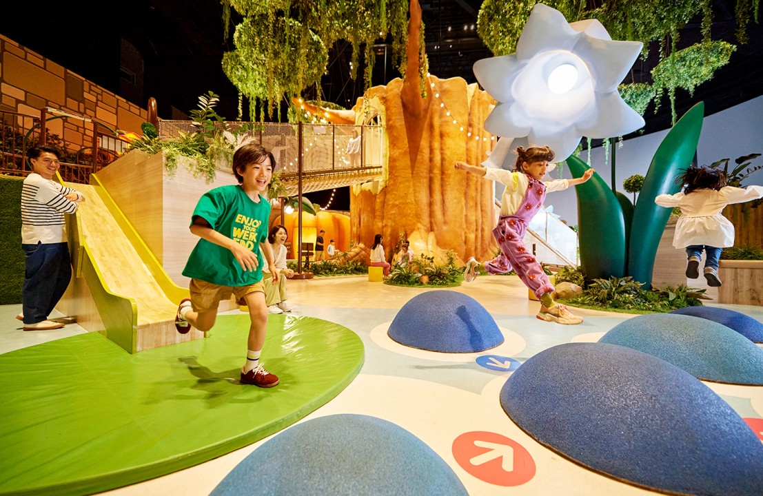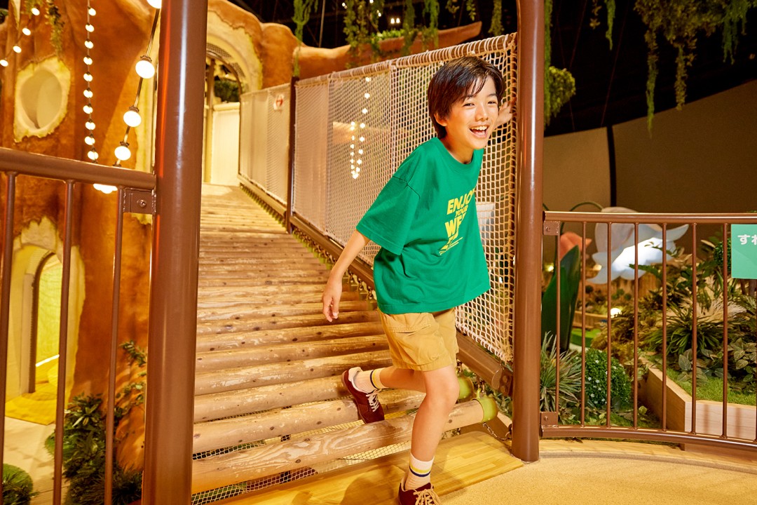 巨大的森林中有绳网和球秋千、蹦床和滑梯等,聚集了很多玩具的面向儿童的室内体育运动设施。从踏入的瞬间起,简直就像图画书一样的世界蔓延开来,可以以小矮人的心情玩耍。也有婴幼儿的区域,所以小孩子也可以放心玩。