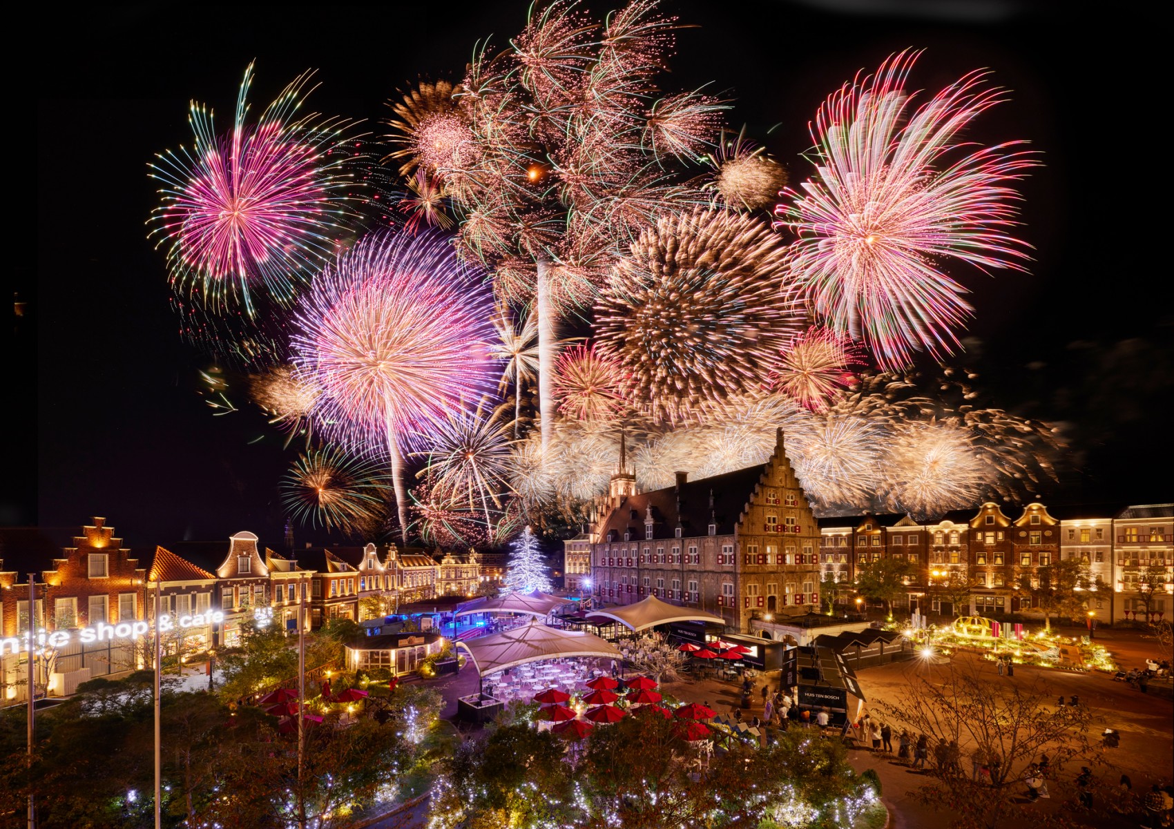 晚上7点左右:荷兰和日本烟火技师合作燃放烟花