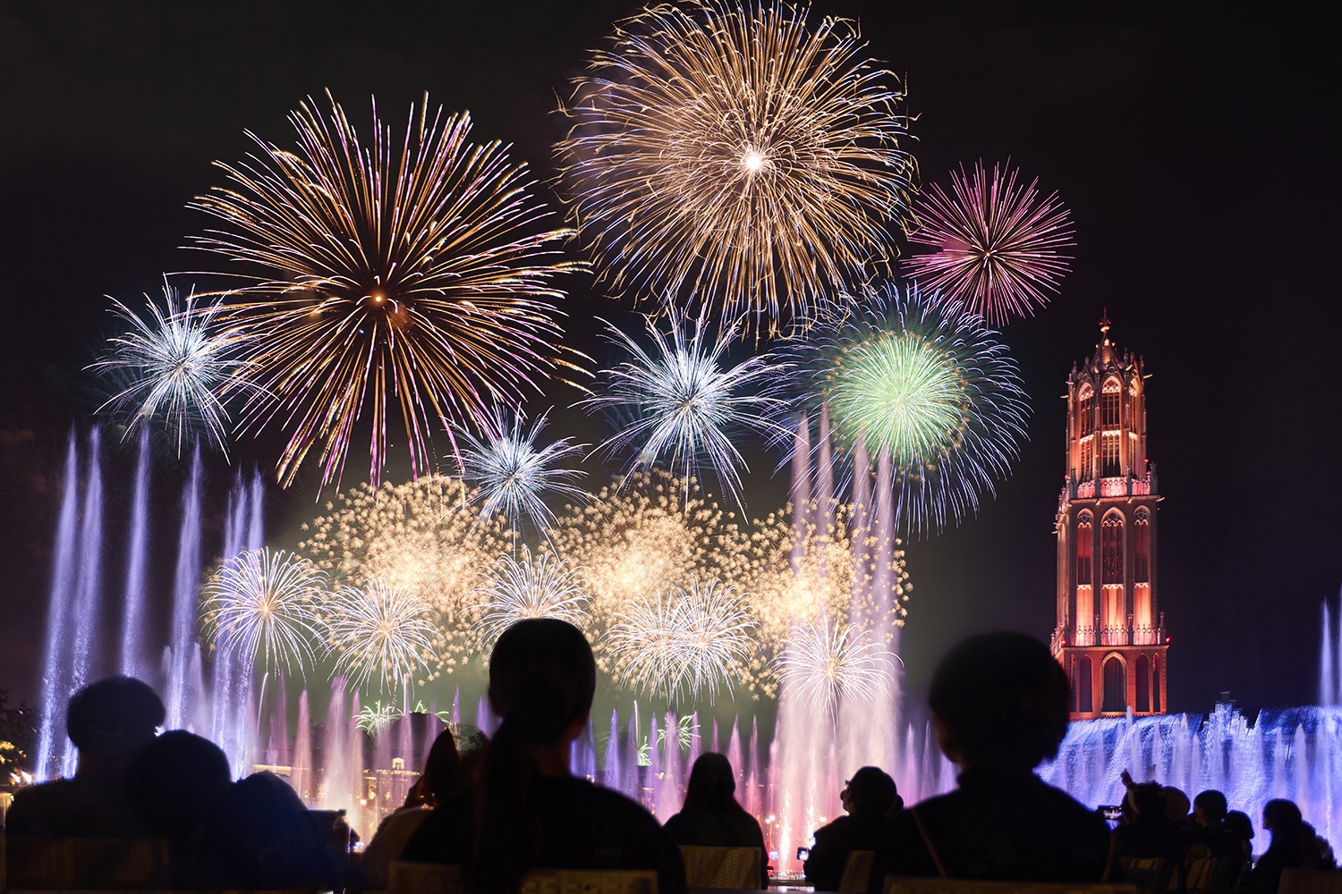 当我们迎接新年时,壮观的烟花照亮了豪斯登堡夜空。