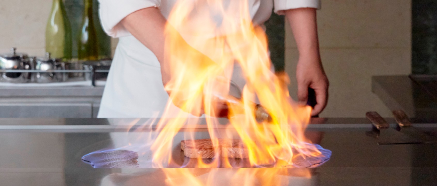 您可以在铁板烧上享用长崎和牛等从九州各地严选的食材。我们的品牌牛肉的味道会根据烧烤程度而发生巨大变化,由我们技术精湛的厨师在賓客面前精心、动态地烹制。您可以享受片刻的幸福和最好的品味。