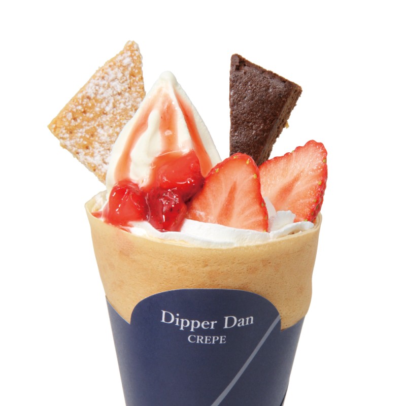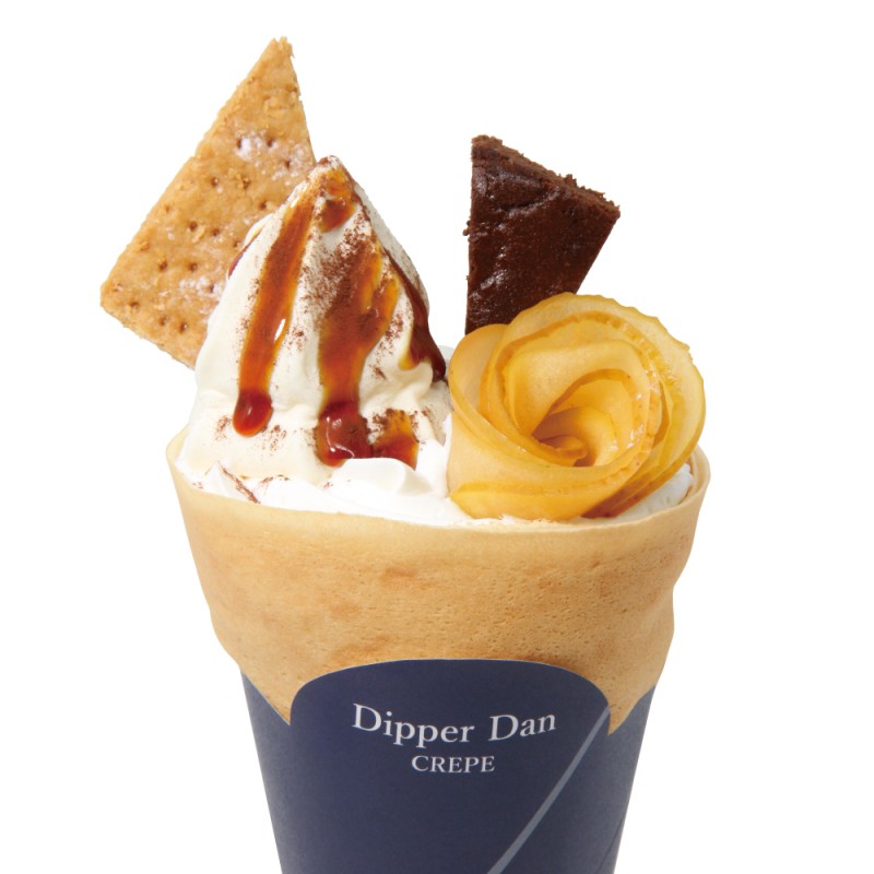 鮮やかなブルーの屋根が目印の「ディッパーダン」は、ズラリと並ぶクレープのディスプレイがお出迎え。どれを食べようか悩んでしまうほどのバリエーションです。熊本県産米粉を使用した生地は、パリッ&もっちりとした食感。焼き立て・出来立てをご提供いたします。