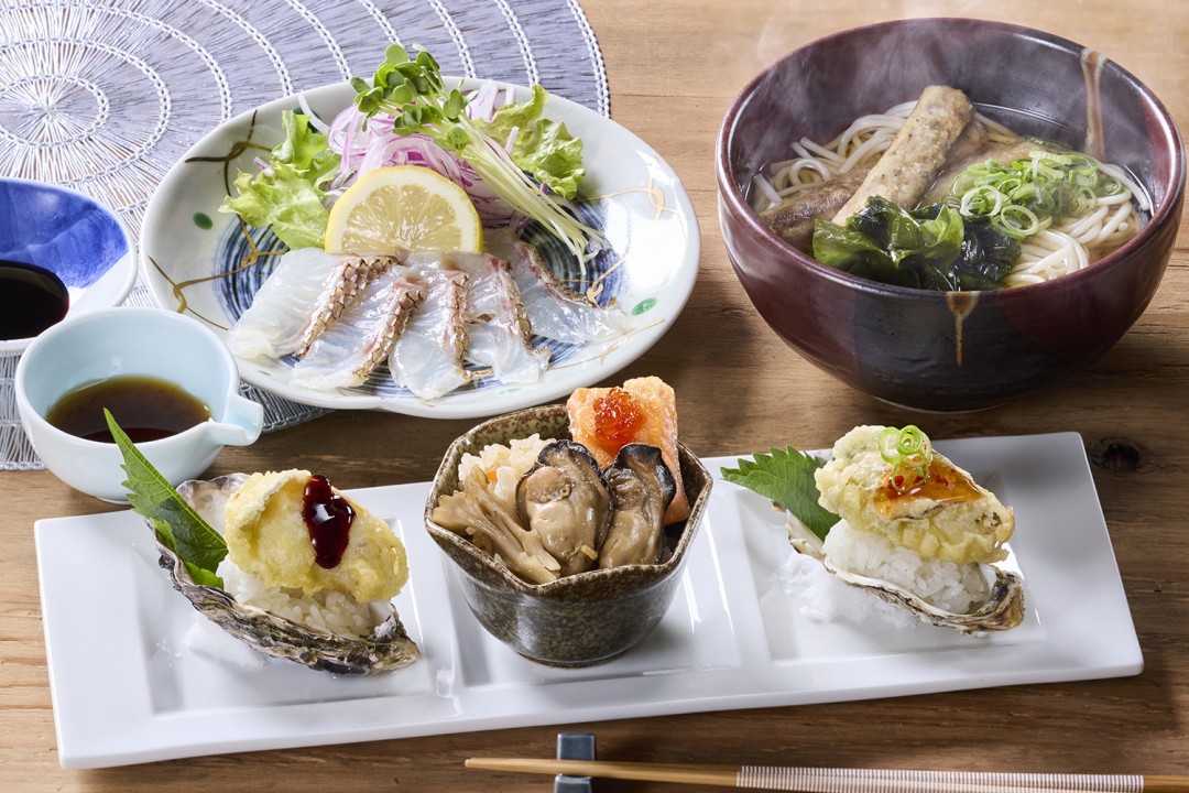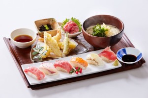 新鮮な魚が自慢の、長崎ならではの握り寿司を味わえる和食レストラン。おすすめは、近海の魚を使った握り寿司に、天ぷらや刺身を添えた贅沢な寿司御膳です。玄界灘の鷹島(たかしま)で育った本まぐろを使用した寿司や丼のほか、お子様メニューや五島うどんもご用意。ご家族そろって、長崎の海の恵みをご堪能ください。