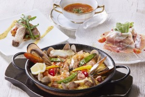 配火腿和嫩叶汤油封猪肉海鲜饭 该服务在繁忙时段可能无法使用。