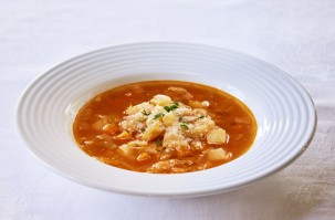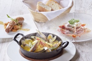 配火腿和嫩叶香肠海鲜马赛鱼汤面包 该服务在繁忙时段可能无法使用。