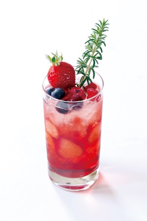 草莓和苏打水带有草莓清爽甜味的饮料。(酒精或非酒精)