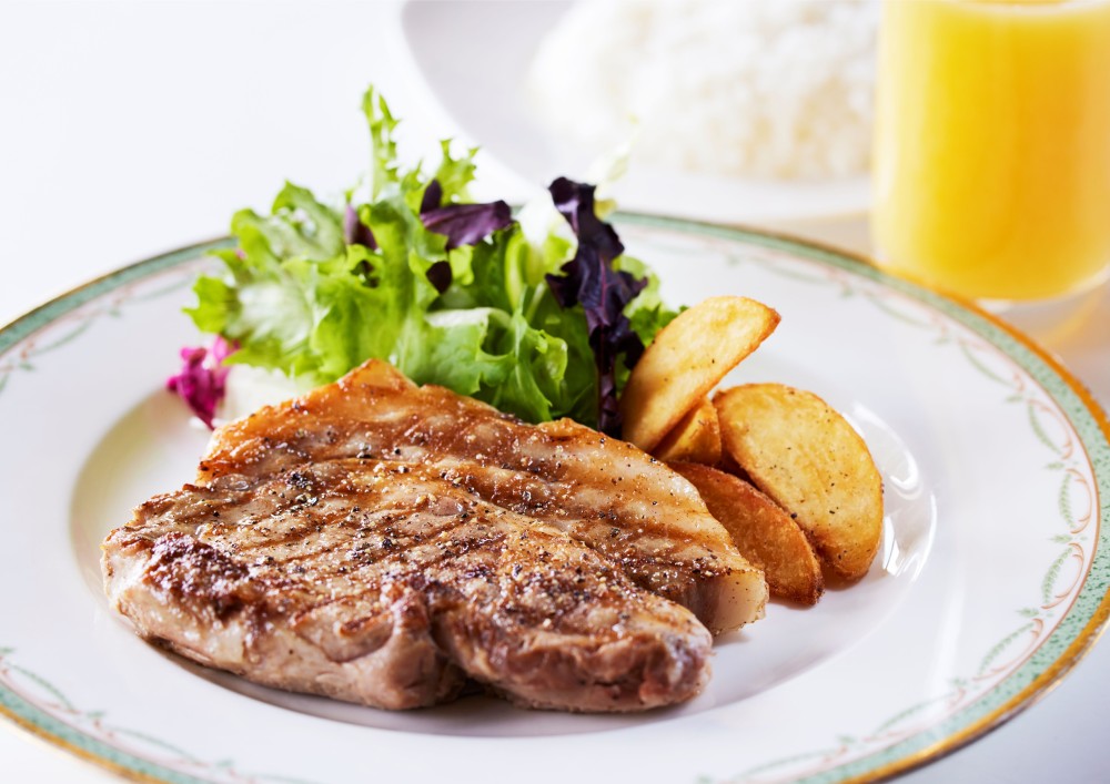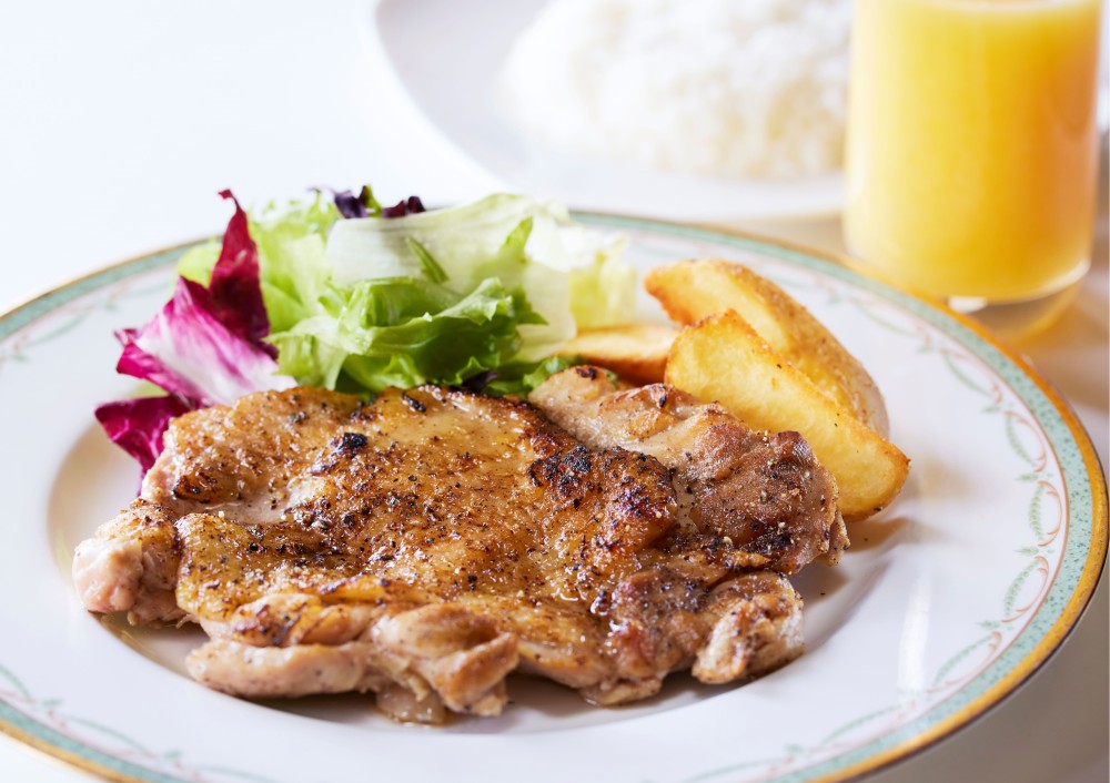 通常、レモンステーキというのは、薄切りのお肉を使用するのが始まりでしたが、ゲストから分厚いお肉でレモンステーキを食べたいというお声をいただき、ロード・レーウのオリジナルで厚切りのレモンステーキを仕上げました。