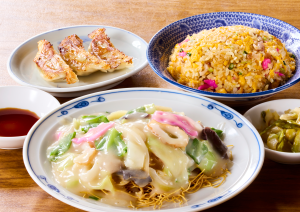长崎碟乌冬面 (中号)半炒饭饺子3个※碟乌冬面有 【细面・粗面】 可供选择