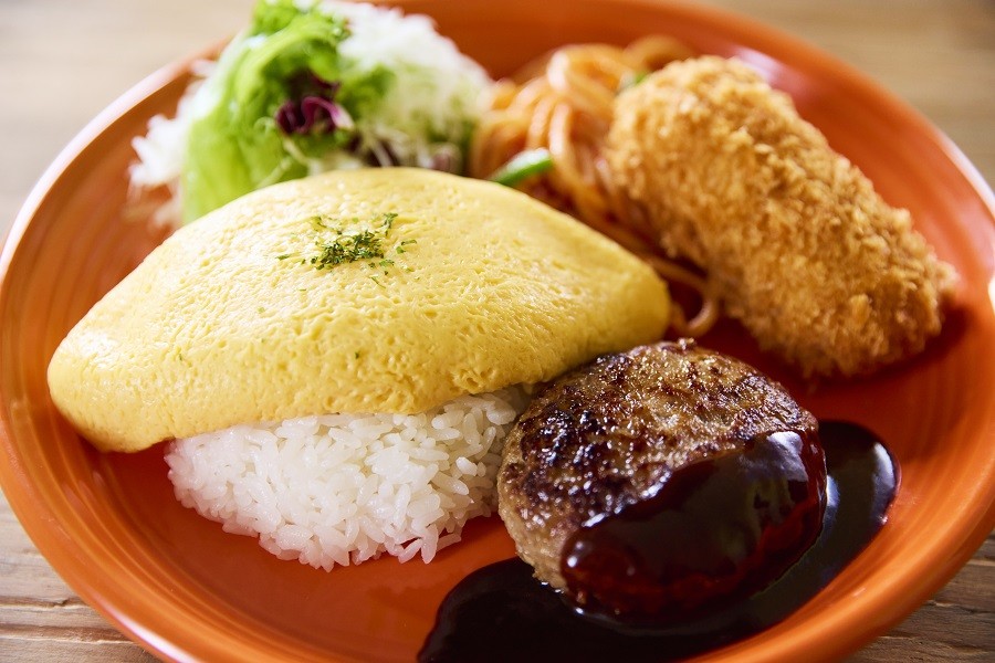オムライス・ハンバーグ・クリームコロッケ・ナポリタンを盛り合わせた人気のトルコライス。