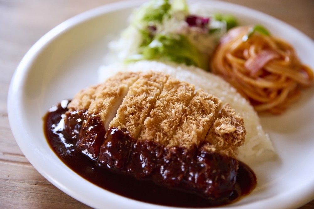 とんかつ・バターライス・ナポリタンを盛り合わせたThe トルコライス。