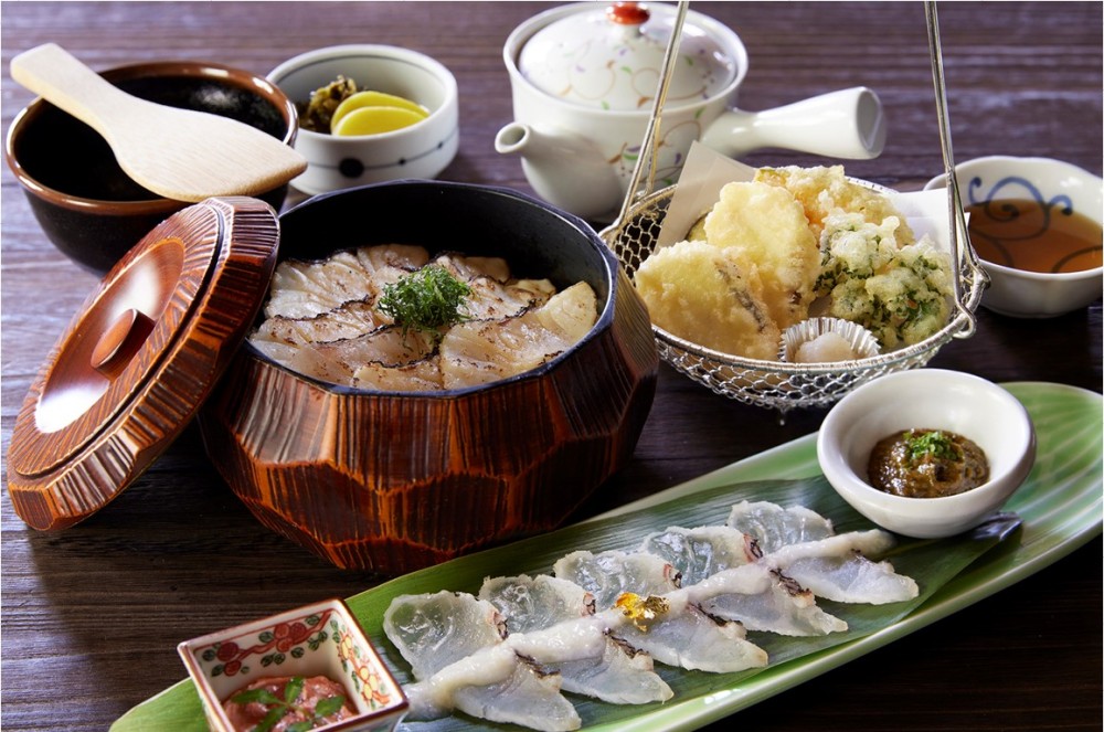 地元・長崎の旬の食材を使用した御膳料理を提供する和食処。 昼のおすすめは、地元西海産豚肉を使用し、2種のパン粉で包んで揚げた「豚カツ」夜のおすすめは、一膳で四通りの美味しさを楽しめる「長崎和牛三昧膳」と「長崎真鯛茶漬け御膳」。どちらもここでしか味わうことができない逸品です。お刺身やすき焼きをご堪能いただけるメニューもご用意しています。