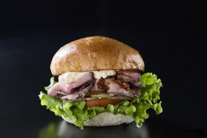 是烤牛肉搭配塔塔塔奶酪的原创佐世保汉堡。