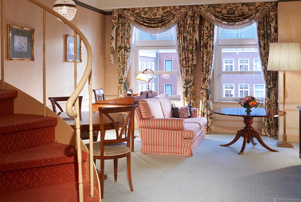 复式公寓拥有高度的独立性,客厅和卧室位于不同的楼层。位于欧洲酒店165平方米在我们最大的套房中与您的亲人共度宝贵时光。