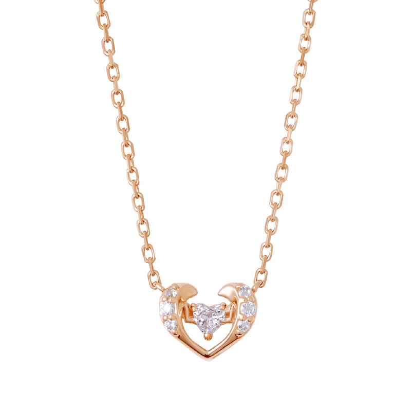 中央のハートシェイプストーンは特殊な方法でセットされ、いつまでも繊細に揺れ続け、胸元で美しくきらめきます。