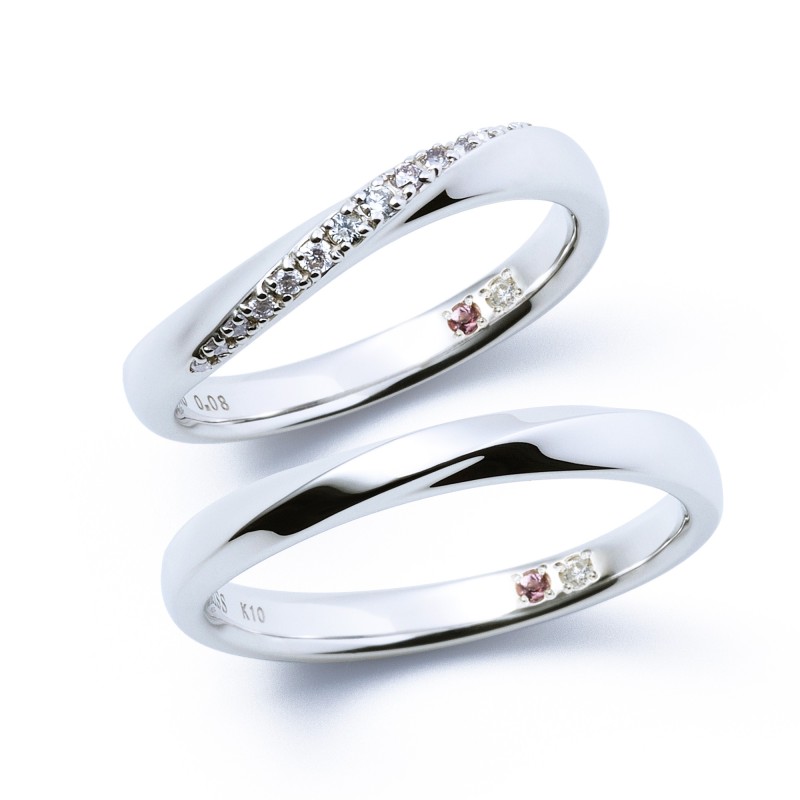 レディースには「永遠」を意味するダイヤモンドライン上に埋め込んであります。