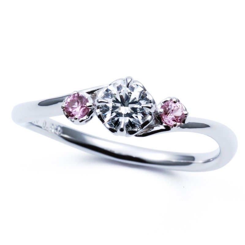 ふたりの幸せを祝福するように、美しく華やかなストーンがダイヤモンドの脇で輝きます。