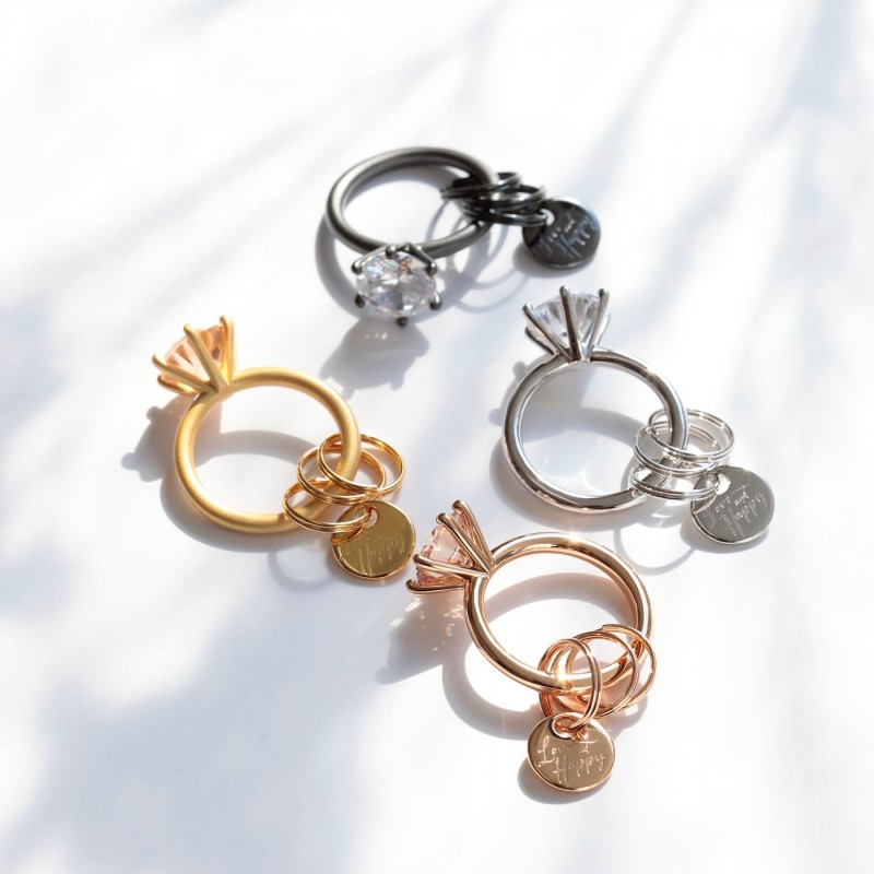 大粒のストーンがきらめくリング型キーホルダー「RING KEY RING」