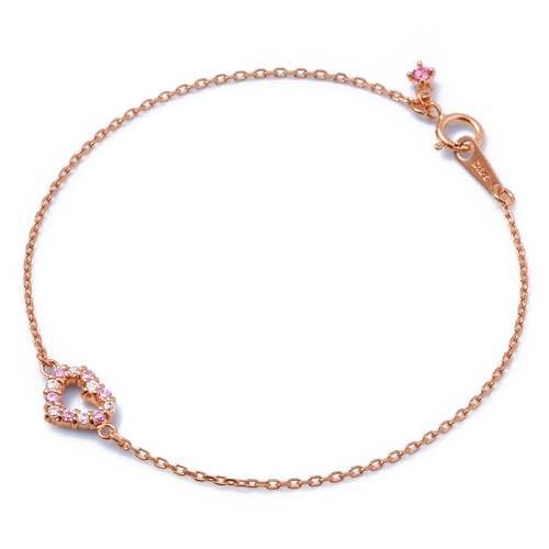 ホワイトとピンクのキュービックジルコニアを交互に並べ、オープンハートをかたどったブレスレット。
