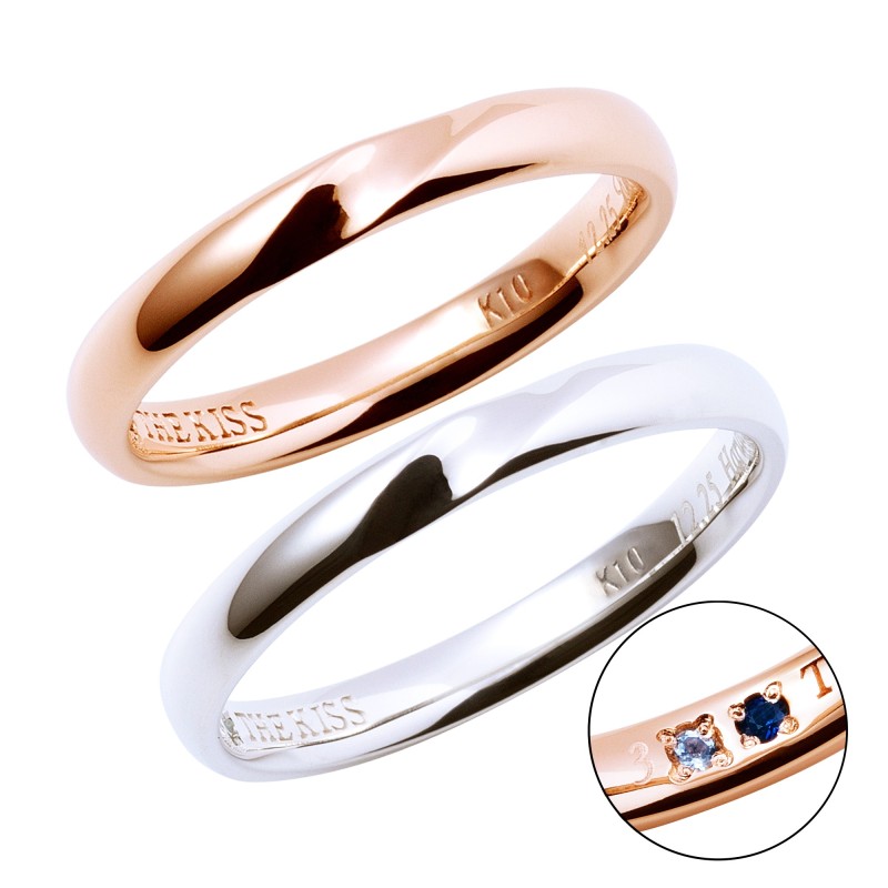 リングの内側にお好きな誕⽣⽯を2⽯セットし、⼤切な⼈のお名前などお好きな⽂字を刻印できるセミオーダーペアリングです。
