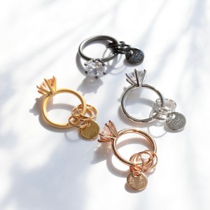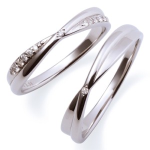 “交叉”系列中的配对,两条线相交,表达两个人之间的相遇。中心镶嵌一颗具有“永恒”意义的钻石,祈愿“两人的爱情天长地久”。