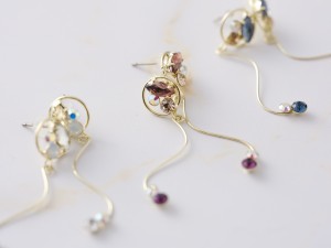 耳环的灵感源自豪斯登堡照明。用摇曳的配饰点亮您的耳朵。有 3 种颜色可供选择:白色、粉色和蓝色。