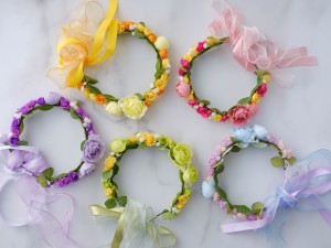 这款花冠的背面有一条透明硬纱丝带,从任何角度看都很可爱。设计中点缀着豪斯登堡盛开的玫瑰,淡淡的色彩与场馆内的街景相映成趣。