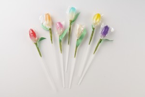 带有色彩缤纷郁金香可爱棒棒糖。这是一种值得推荐的甜点,同时也是一份很棒的小纪念品。
