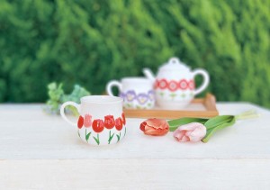 用五颜六色的花朵装饰的餐具,非常适合春天。它会给您在家喝茶的时光增添一丝魅力。丰满的花朵浮雕是亮点。 [花形马克杯] 各1,740日元[花茶壶] 各3,080日元