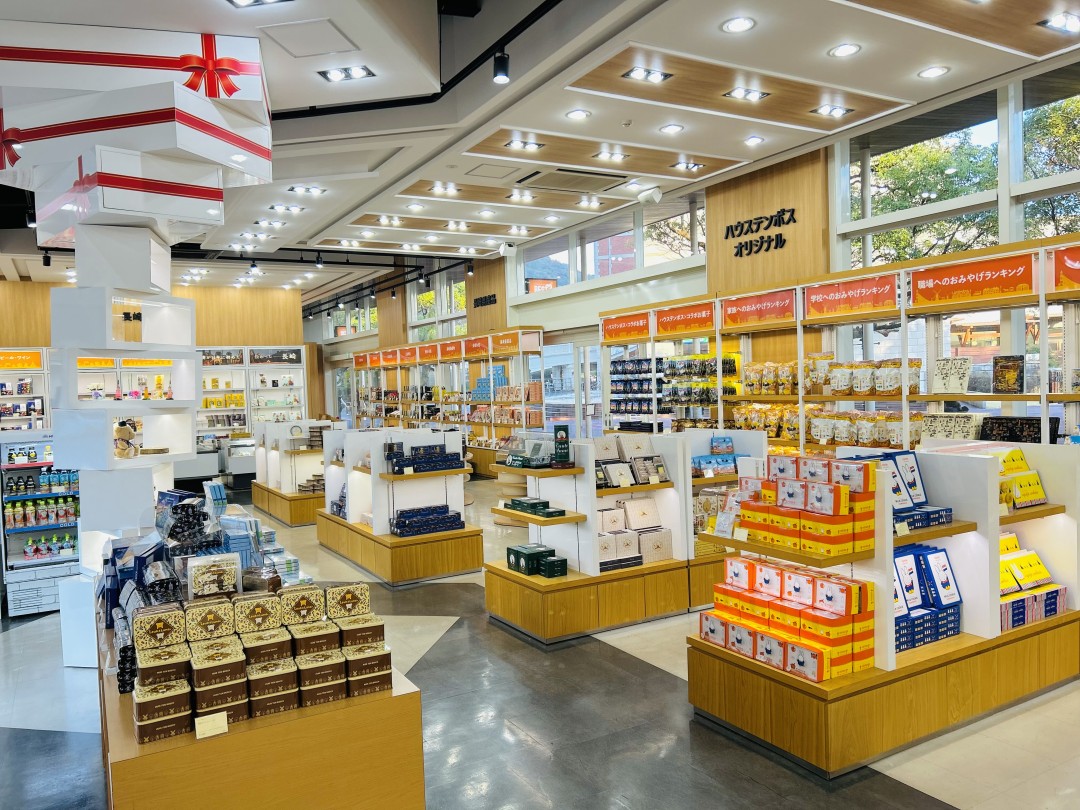 虽然位于豪斯登堡外面,商店也出售原创商品。当您想购买更多纪念品时也很方便。还备有来自偏远岛屿等长崎各地的特产。有很多当地的特产和产品。尤其是用在集市上评价很高的园木茶制作的黄油和甜点很受欢迎。