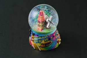 将豪斯登堡的三大标志紧紧地合二为一的限量版雪花球。风车,马房(教堂),德姆特伦高塔(塔)定期更换正面,玩得开心♪高度:约 9 cm