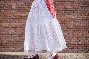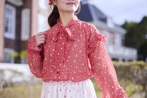 层叠的雪纺营造出适中的蓬松感,打造出优雅甜美的造型,又不显得过于甜腻。草莓和miffy图案点缀着波点设计,更显精致。建议搭配衬衫穿着。